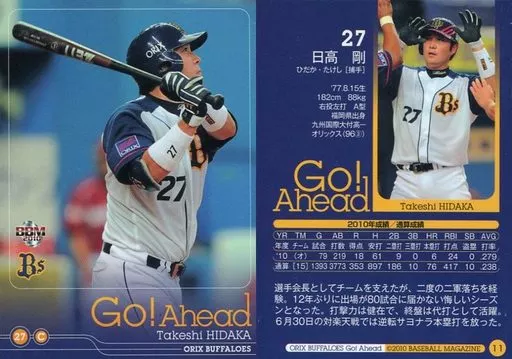 Nombre comercial en japonés: BBM/レギュラーカード/オリックス・バファローズ/BBM2010 オリックス・バファローズ Go!Ahead 11[レギュラーカード]:日高剛