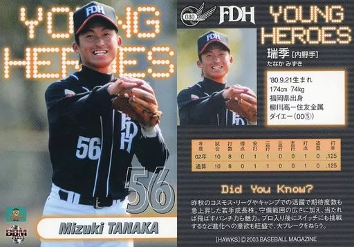 Nombre comercial en japonés: BBM/レギュラーカード/BBM2003 福岡ダイエーホークス 080 [レギュラーカード] : 瑞季