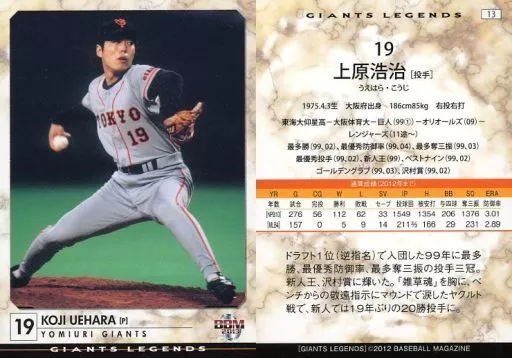 Nombre comercial en japonés: BBM/レギュラーカード/読売ジャイアンツ/BBM2013 ジャイアンツ・レジェンド 13 [レギュラーカード] : 上原浩治