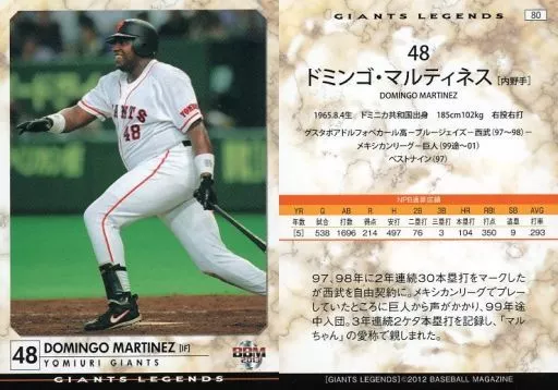 Nombre comercial en japonés: BBM/レギュラーカード/読売ジャイアンツ/BBM2013 ジャイアンツ・レジェンド 80 [レギュラーカード] : マルティネス