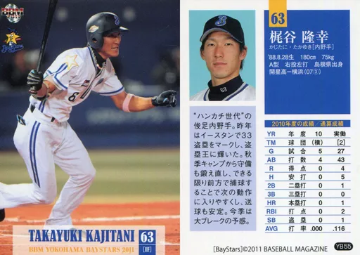 Nombre comercial en japonés: BBM/レギュラーカード/BBM2011 横浜ベイスターズ YB55 [レギュラーカード] : 梶谷隆幸