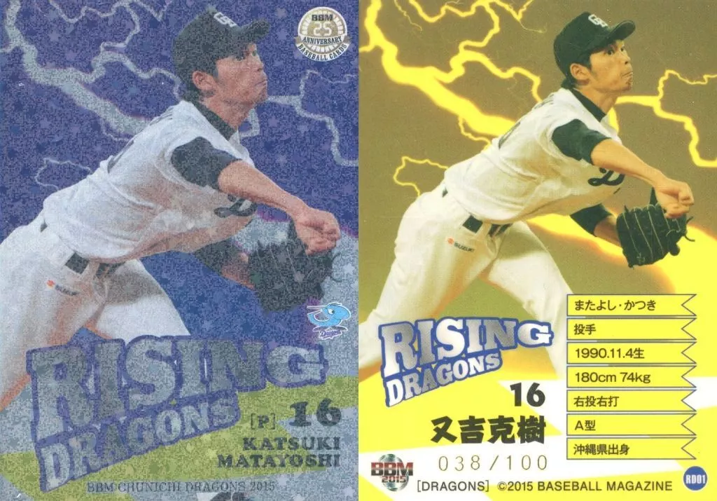 Nombre comercial en japonés: BBM/インサートカード/RISING DRAGONS/BBM2015 中日ドラゴンズ RD01[インサートカード]:又吉克樹(パラレル版)(/100)