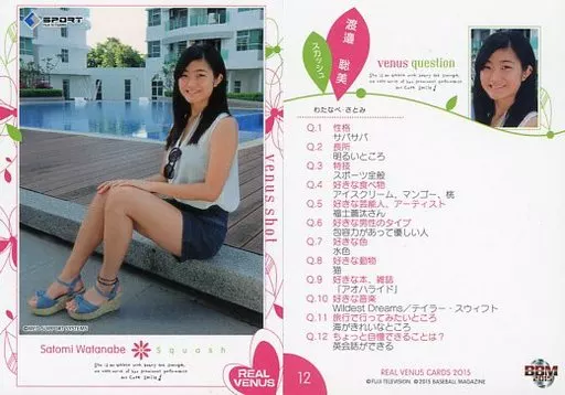 Nombre comercial en japonés: BBM/レギュラーカード/Venus Shot/スカッシュ/BBM REAL VENUS CARDS 2015 12 [レギュラーカード] : 渡邉聡美