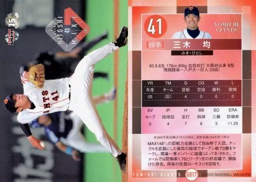 Nombre comercial en japonés: BBM/レギュラーカード/読売ジャイアンツ/BBM2005 読売ジャイアンツ G017 [レギュラーカード] : 三木均