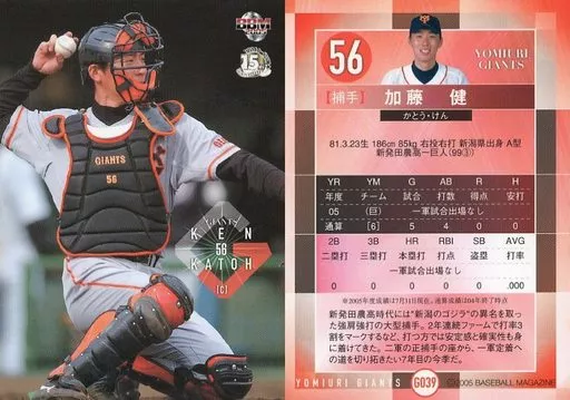 Nombre comercial en japonés: BBM/レギュラーカード/読売ジャイアンツ/BBM2005 読売ジャイアンツ G039 [レギュラーカード] : 加藤健