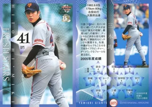 Nombre comercial en japonés: BBM/レギュラーカード/BBM2005 読売ジャイアンツ G075 [レギュラーカード] : 三木均