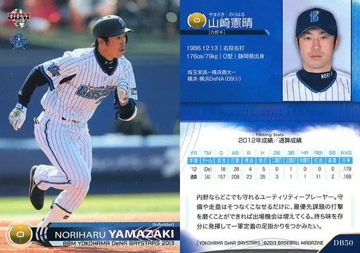 Nombre comercial en japonés: BBM/レギュラーカード/BBM2013 横浜DeNAベイスターズ DB50 [レギュラーカード] : 山崎憲晴