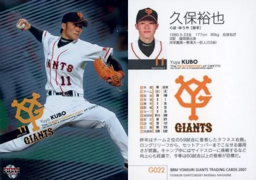 Nombre comercial en japonés: BBM/レギュラーカード/BBM2007 読売ジャイアンツ G022 [レギュラーカード] : 久保裕也(パラレル版)