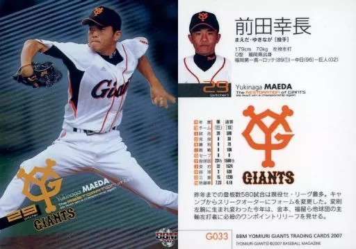 Nombre comercial en japonés: BBM/レギュラーカード/BBM2007 読売ジャイアンツ G033 [レギュラーカード] : 前田幸長(パラレル版)