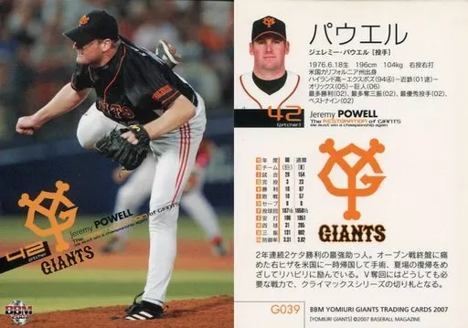 Nombre comercial en japonés: BBM/レギュラーカード/BBM2007 読売ジャイアンツ G039 [レギュラーカード] : パウエル