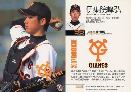 Nombre comercial en japonés: BBM/レギュラーカード/BBM2007 読売ジャイアンツ G058 [レギュラーカード] : 伊集院峰弘
