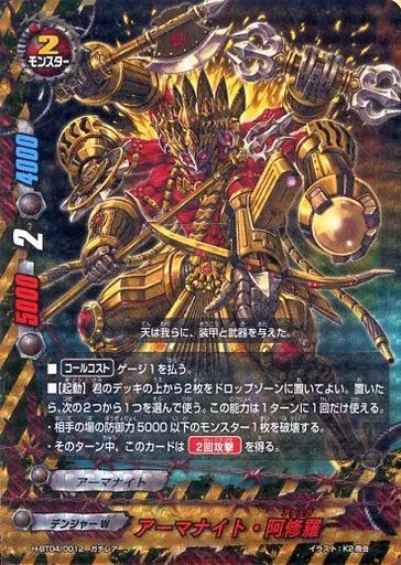 Nombre comercial en japonés: バディファイト/ガチレア/モンスター/デンジャーW/[BF-H-BT04]ハンドレッド ブースターパック 第4弾 ミカド・エボリューション H-BT04/0012[ガチレア]:アーマナイト・阿修羅