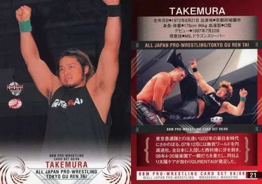 Nombre comercial en japonés: BBM/レギュラーカード/BBM2009 プロレスカードセット08-09 全日本プロレス 21 [レギュラーカード] : TAKEMURA