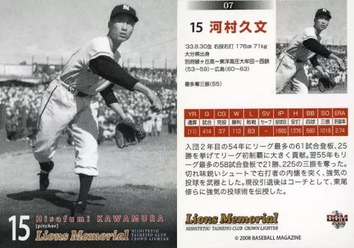 Nombre comercial en japonés: BBM/レギュラーカード/BBM2008 ライオンズ メモリアルカード 07 [レギュラーカード] : 河村久文