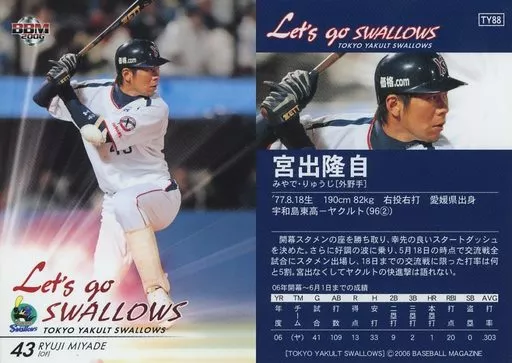 Nombre comercial en japonés: BBM/レギュラーカード/BBM2006 東京ヤクルトスワローズ TY88 [レギュラーカード] : 宮出隆自