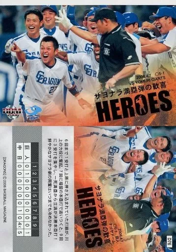 Nombre comercial en japonés: BBM/レギュラーカード/BBM2006 中日ドラゴンズ D76 [レギュラーカード] : 4・7 サヨナラ満塁弾の歓喜