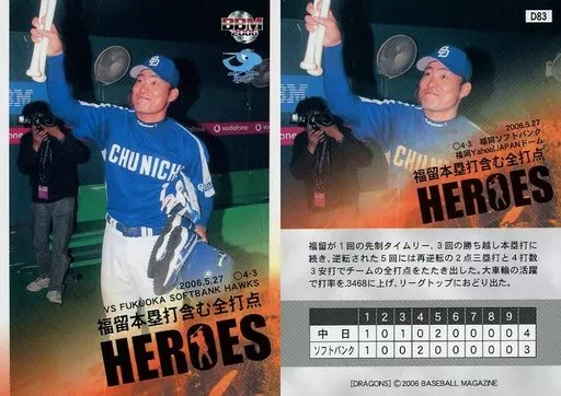 Nombre comercial en japonés: BBM/レギュラーカード/BBM2006 中日ドラゴンズ D83 [レギュラーカード] : 5・27 福留本塁打含む全打点