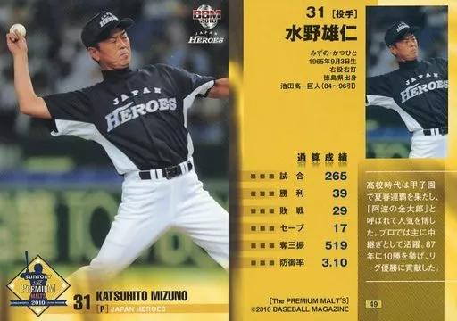 Nombre comercial en japonés: BBM/レギュラーカード/ジャパン・ヒーローズ/BBM2010 サントリー ザ・プレミアム・モルツドリームマッチ 49 [レギュラーカード] : 水野雄仁