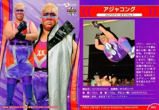 Nombre comercial en japonés: BBM/レギュラーカード/現役選手/BBM 女子プロレスカード2016 TRUE HEART 05 [レギュラーカード] : アジャコング