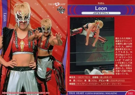 Nombre comercial en japonés: BBM/レギュラーカード/現役選手/BBM 女子プロレスカード2016 TRUE HEART 112 [レギュラーカード] : Leon