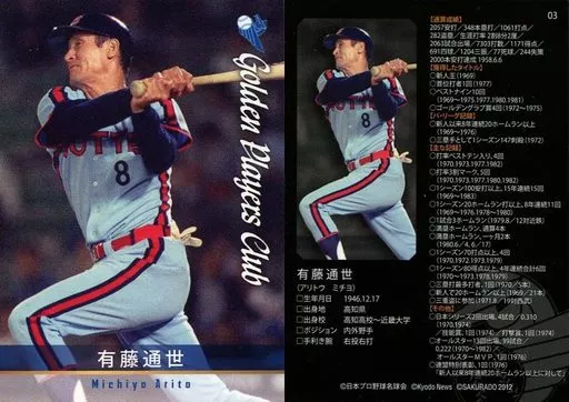 Nombre comercial en japonés: スポーツ/レギュラーカード/ロッテオリオンズ/さくら堂 日本プロ野球名球会オフィシャルトレーディングカード Golden Players Club 03 [レギュラーカード] : 有籐通世