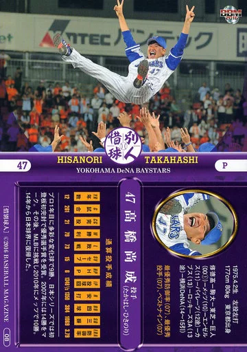 Nombre comercial en japonés: BBM/レギュラーカード/横浜DeNAベイスターズ/BBM2016 惜別球人 08 [レギュラーカード] : 高橋尚成