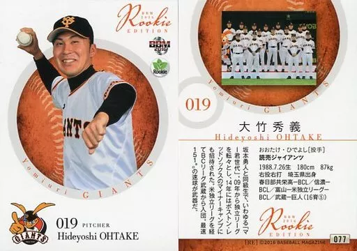 Nombre comercial en japonés: BBM/レギュラーカード/読売ジャイアンツ/BBM2016 ルーキーエディション 077 [レギュラーカード] : 大竹秀義