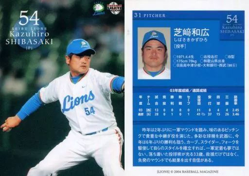 Nombre comercial en japonés: BBM/レギュラーカード/BBM2004 西武ライオンズ 31 [レギュラーカード] : 芝崎和広
