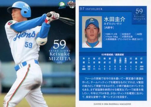 Nombre comercial en japonés: BBM/レギュラーカード/BBM2004 西武ライオンズ 57 [レギュラーカード] : 水田圭介
