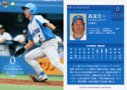 Nombre comercial en japonés: BBM/レギュラーカード/BBM2004 西武ライオンズ 60 [レギュラーカード] : 高波文一