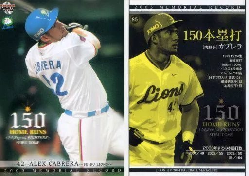 Nombre comercial en japonés: BBM/レギュラーカード/BBM2004 西武ライオンズ 85 [レギュラーカード] : カブレラ