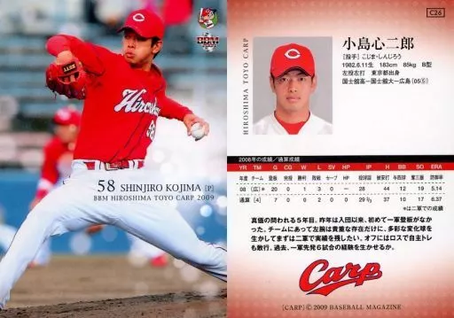 Nombre comercial en japonés: BBM/レギュラーカード/BBM2009 広島東洋カープ C26 [レギュラーカード] : 小島心二郎