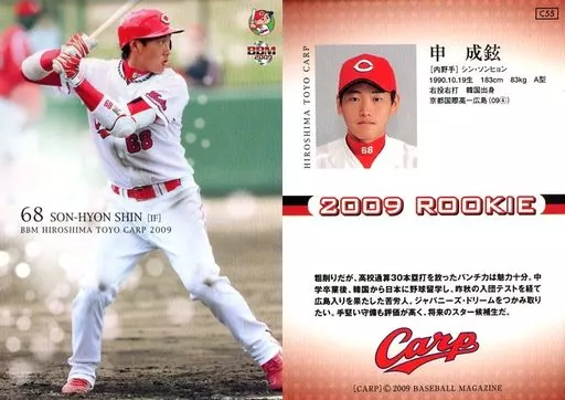 Nombre comercial en japonés: BBM/レギュラーカード/BBM2009 広島東洋カープ C55 [レギュラーカード] : 申成鉉