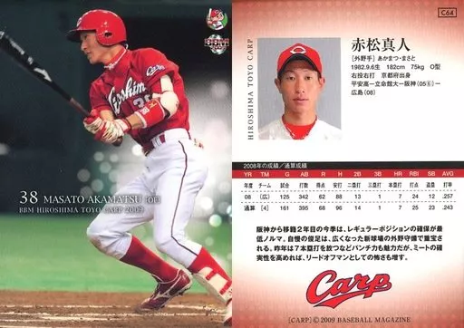 Nombre comercial en japonés: BBM/レギュラーカード/BBM2009 広島東洋カープ C64 [レギュラーカード] : 赤松真人