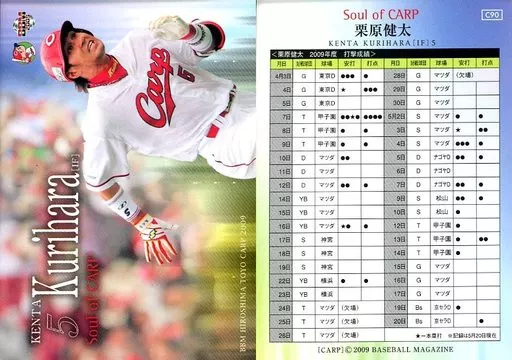 Nombre comercial en japonés: BBM/レギュラーカード/現役主力選手/BBM2009 広島東洋カープ C90 [レギュラーカード] : 栗原健太