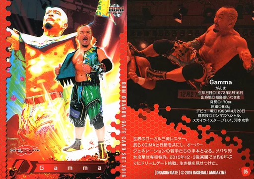 Nombre comercial en japonés: BBM/レギュラーカード/BBM2016 ドラゴンゲートカードセット 05 [レギュラーカード] : Gamma