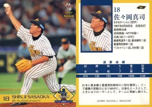 Nombre comercial en japonés: BBM/レギュラーカード/ザ・プレミアムモルツ球団/BBM2009 サントリー ザ・プレミアム・モルツドリームマッチ 24 [レギュラーカード] : 佐々岡真司