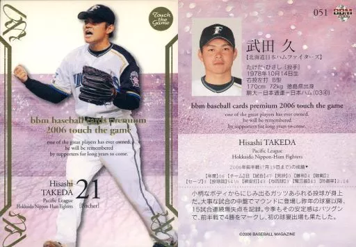 Nombre comercial en japonés: BBM/レギュラーカード/北海道日本ハムファイターズ/BBM2006 Touch the game(タッチ・ザ・ゲーム) 051 [レギュラーカード] : 武田久