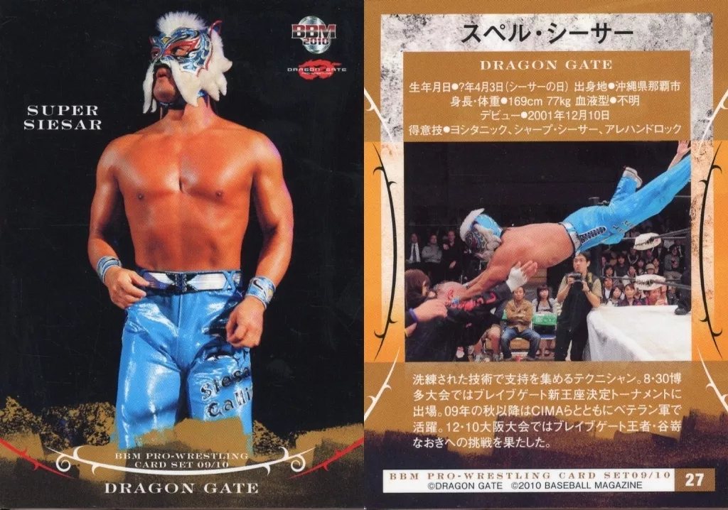 Nombre comercial en japonés: BBM/レギュラーカード/BBM2010 プロレスカードセット09/10 DRAGON GATE 27[レギュラーカード]:スペル・シーサー