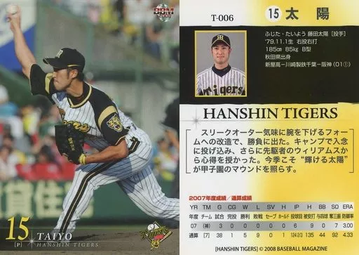 Nombre comercial en japonés: BBM/レギュラーカード/BBM2008 阪神タイガース T-006 [レギュラーカード] : 太陽