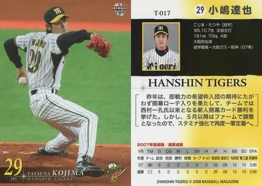 Nombre comercial en japonés: BBM/レギュラーカード/BBM2008 阪神タイガース T-017 [レギュラーカード] : 小嶋達也
