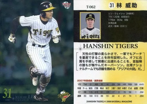 Nombre comercial en japonés: BBM/レギュラーカード/BBM2008 阪神タイガース T-062 [レギュラーカード] : 林威助(パラレル版)