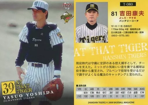 Nombre comercial en japonés: BBM/レギュラーカード/AT THAT TIGER/BBM2008 阪神タイガース T-080 [レギュラーカード] : 吉田康夫