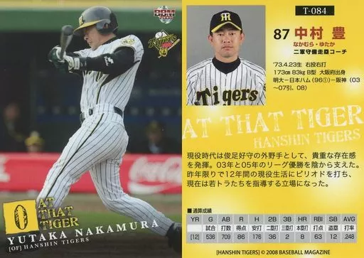 Nombre comercial en japonés: BBM/レギュラーカード/AT THAT TIGER/BBM2008 阪神タイガース T-084 [レギュラーカード] : 中村豊