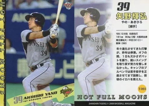 Nombre comercial en japonés: BBM/レギュラーカード/HOT FULL MOONS/BBM2008 阪神タイガース T-093 [レギュラーカード] : 矢野輝弘