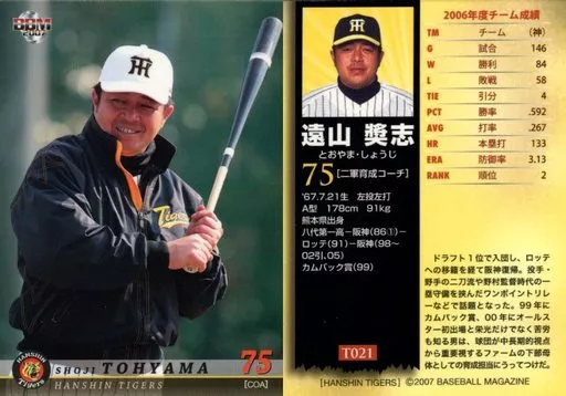 Nombre comercial en japonés: BBM/レギュラーカード/BBM2007 阪神タイガース T-021 [レギュラーカード] : 遠山奨志