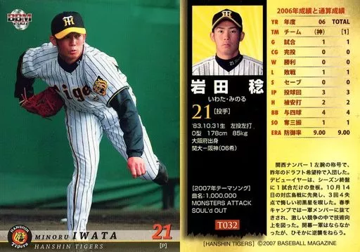 Nombre comercial en japonés: BBM/レギュラーカード/BBM2007 阪神タイガース T-032 [レギュラーカード] : 岩田稔