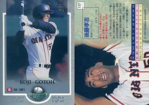 Nombre comercial en japonés: BBM/レギュラーカード/読売ジャイアンツ/BBM’97 Diamond Heroes(ダイヤモンドヒーローズ) 157 [レギュラーカード] : 後藤孝志