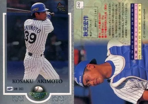 Nombre comercial en japonés: BBM/レギュラーカード/横浜ベイスターズ/BBM’97 Diamond Heroes(ダイヤモンドヒーローズ) 242 [レギュラーカード] : 秋元宏作
