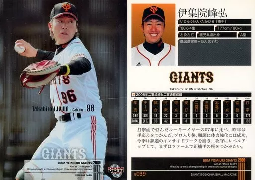 Nombre comercial en japonés: BBM/レギュラーカード/BBM 読売ジャイアンツ 2009 G039 [レギュラーカード] : 伊集院峰弘(キラパラレル版)
